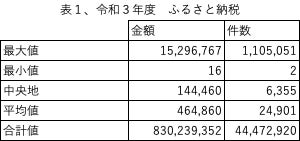 総務省の「令和3年度受入額の実績等」を基本データとして使用。その概要を表1にまとめました。