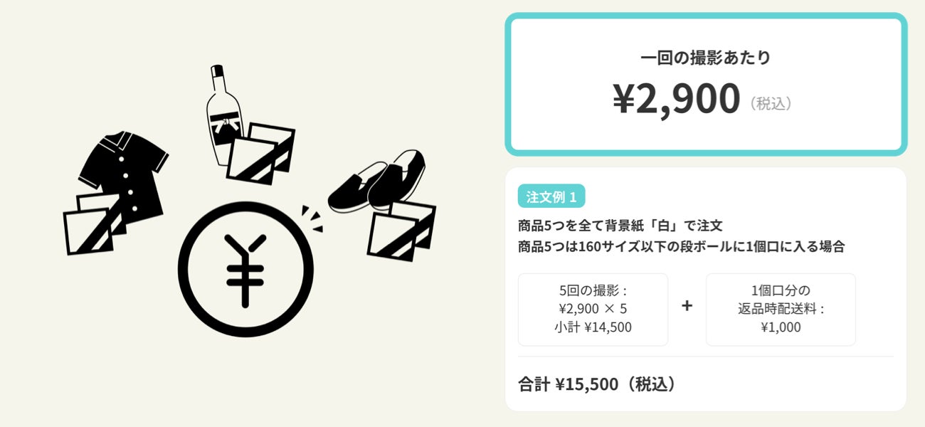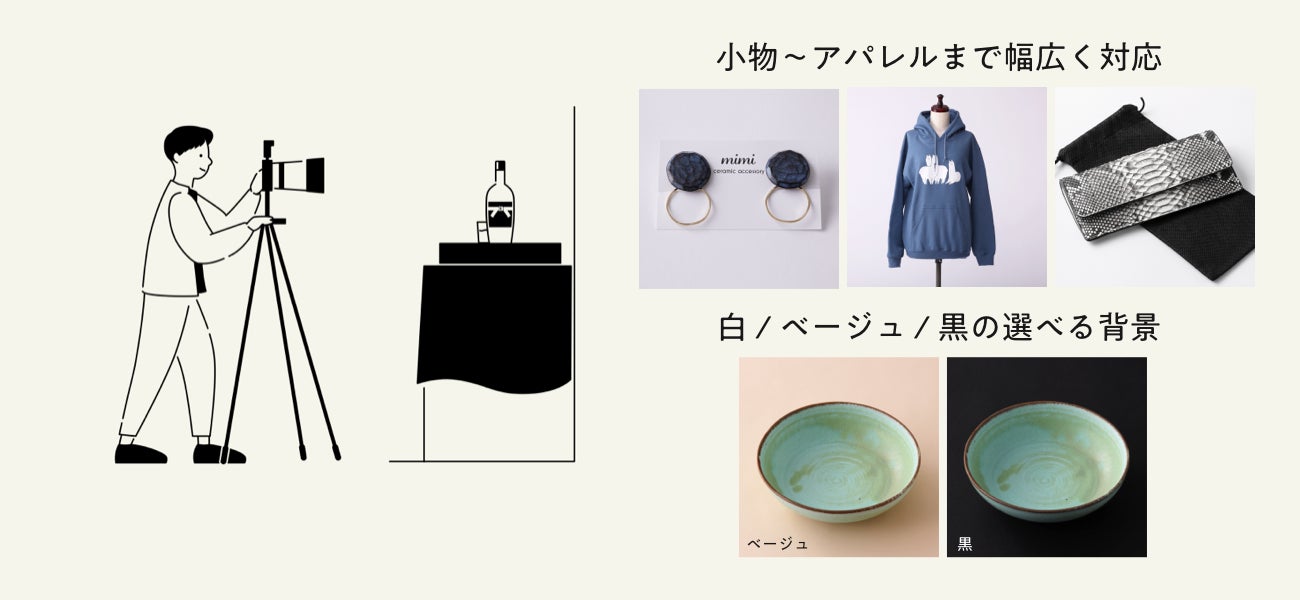 本サービスは、小中規模事業者さまを中心に、日頃のEC運営業務の中で大きな負担となっている「商品写真の撮影」を、WEBからの簡単操作と交渉いらずの明瞭な会計でアウトソーシングすることを可能にし、小中規模事業者さまのECサイトクオリティの向上とEC運営時間の節約を支援させていただきます。