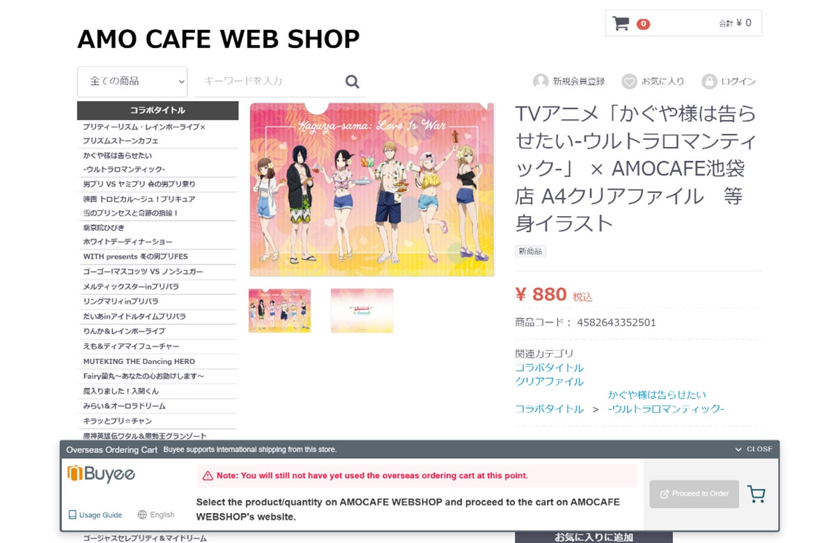 BEENOS株式会社(東証プライム:3328)の連結子会社で、海外向け購入サポートサービス「Buyee(バイイー) https://buyee.jp/」を運営するtenso株式会社(以下「tenso」)は、株式会社サイバーネット(本社:東京都豊島区、代表取締役社長:遠藤 晃司、以下サイバーネット)が運営するコラボレーションカフェ「AMOCAFE」で販売しているアニメなどのグッズを販売する「AMOCAFE WEB SHOP」(URL:https://amocafe-shop.com/)の海外向け販売のサポートを開始しました。