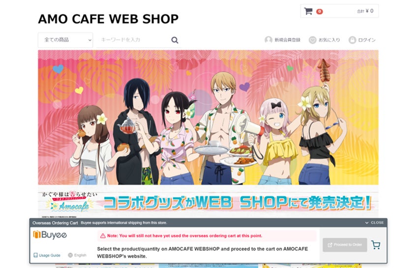 「AMOCAFE WEB SHOP」は人気アニメやキャラクターなどとコラボレーションしたカフェメニューなどを展開する「AMOCAFE」で販売するグッズをお買い求め頂けるECサイトです。これまで多くの人気タイトルとコラボレーションを行い、多くのお客様にカフェメニューとグッズをお楽しみいただいております。直接ご来店いただけないお客様にも楽しんでいただくために「AMOCAFE WEB SHOP」でグッズを販売しておりましたが、かねてより海外のお客様からお問い合わせやアクセスを多数いただいていました。そうした背景から「AMOCAFE WEB SHOP」の優れたUIや世界観を維持したまま海外のユーザーにオンラインショッピングをお楽しみいただけるように「Buyee Connect」を導入いただきました。