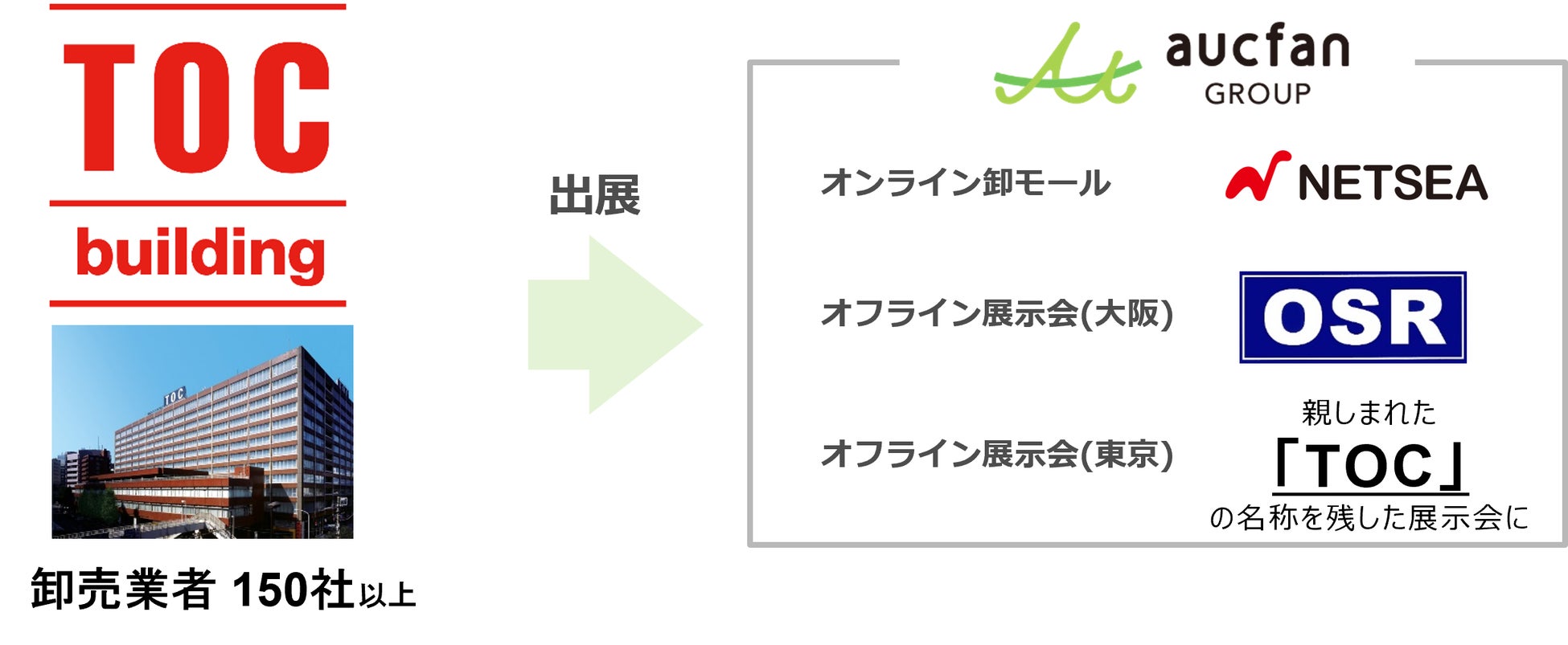 これまでTOCビルに入居していた卸売業者を、当社が運営するオンライン卸モール「NETSEA」、「NETSEA展示会(東京)」「OSR展示商談会(大阪)」に招致いたします。