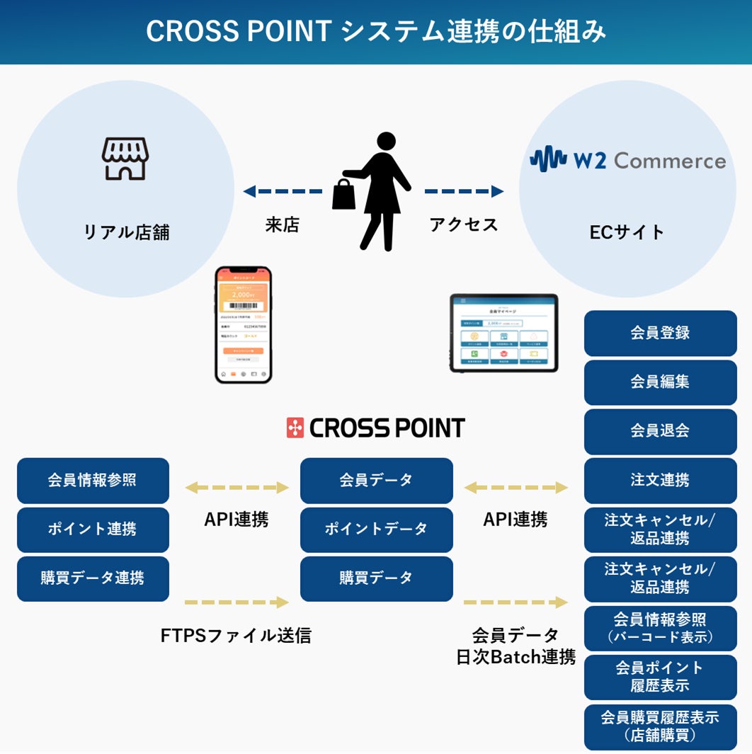様々なビジネスサイズや商材カテゴリを幅広く対応する高機能ECプラットフォームを提供するw2ソリューション株式会社(本社:東京都中央区、代表取締役CEO:山田 大樹)は、オムニチャネル対応型総合ECサイトシステム「w2Commerce」と株式会社アイル(大阪本社:大阪府大阪市北区/東京本社:東京都港区、代表取締役社長:岩本哲夫)のポイント&顧客一元管理ASP「CROSS POINT」とのシステム連携を開始しました。リアル店舗とECサイトの顧客情報やポイントデータ、購入履歴の情報をAPI連携でリアルタイムに同期。情報の一元化により、リアル店舗とECサイト間の相互利用を促しクロスユース率を向上することで、より効果的な販売促進を可能にし、昨今、ECの理想形といわれるユニファイドコマースの実現へと近づけます。