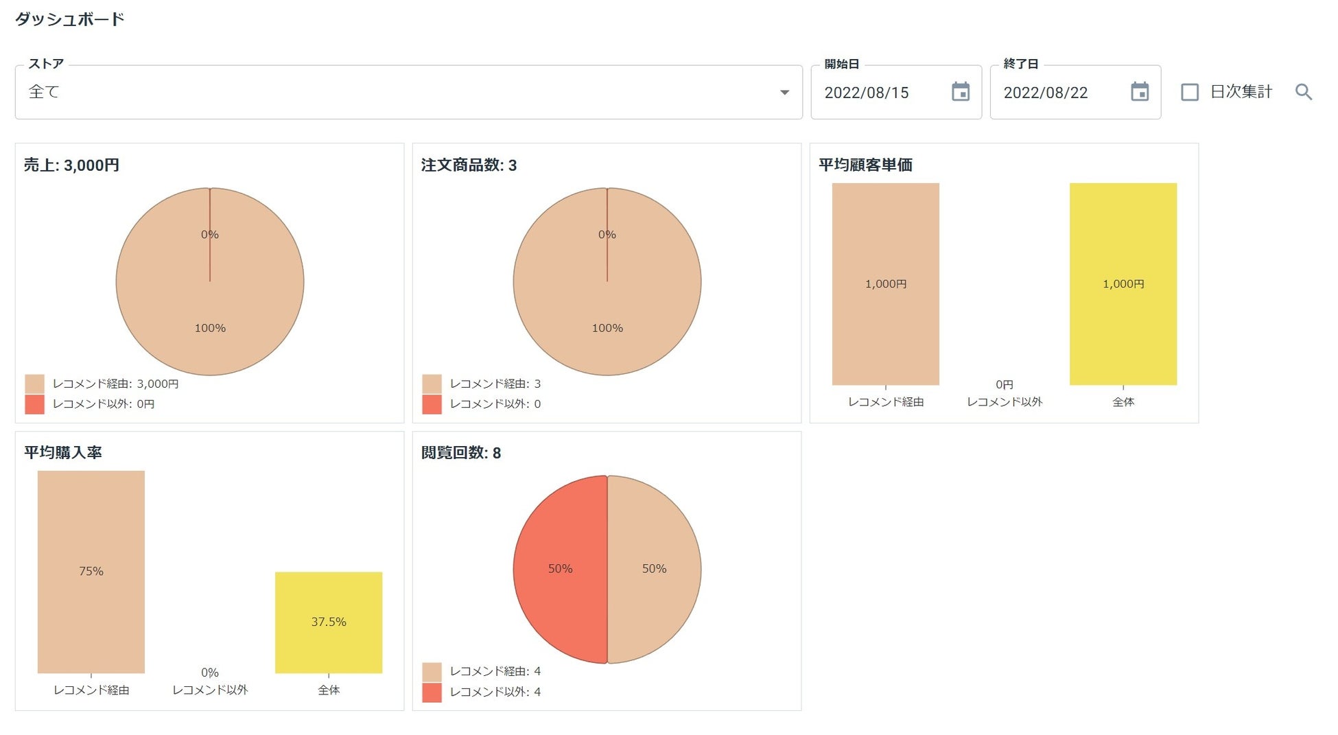 特徴3:全体実績とレコメンド実績を比較することで、成果を見える化