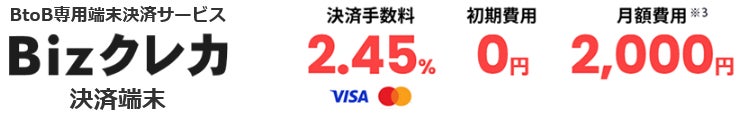 初期費用0円、月額費用2,000円、業界最安値水準の決済手数料2.45%※3にてご利用いただける上、月2回締め2回払い※4の支払いサイトで早期入金によるキャッシュフロー改善にも寄与いたします。