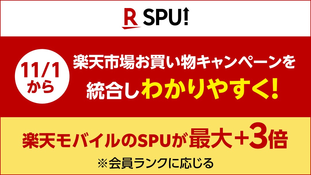 楽天モバイル株式会社(以下「楽天モバイル」)は、2022年11月1日(火)より、楽天グループサービスの利用状況等によって「楽天市場」のポイント還元率が上がるプログラム「SPU(スーパーポイントアッププログラム)」(注1)における「Rakuten UN-LIMIT VII」契約者向け特典のポイント還元率を+1倍から最大+3倍に変更します(注2)。これにより、「SPU」全体のポイント還元率も最大14倍から最大16倍にポイントアップします。なお、本変更に伴い、2022年6月より実施している「Rakuten UN-LIMIT ご契約者様限定!楽天市場でのお買い物がポイント最大+2倍」(以下、「本キャンペーン」)(注3)を2022年10月31日(月)に終了し、本キャンペーンの特典を「SPU」に統合します。