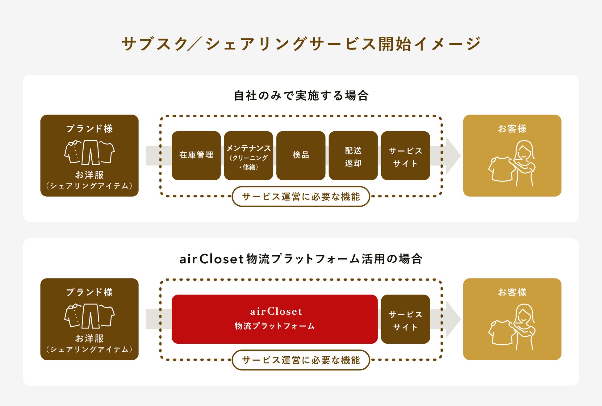 モノを扱うシェアリングサービスは、物流基盤が事業運営においてとても重要になるため、当社は倉庫管理システム(WMS)を自社開発しました。当社では物流基盤を作り上げるまで、多額の投資と年月が必要でした。そのため、今後サブスク/シェアリングサービスを開始したいという企業様が、基盤づくりから始めるのではなく柔軟にサービスが開始できるよう、これまで構築してきた循環型物流プラットフォームを外部へ提供してまいります。また、循環型物流プラットフォームの外部提供を通して、市場におけるサブスク/シェアリングサービスの拡大に貢献していきたいと考えています。