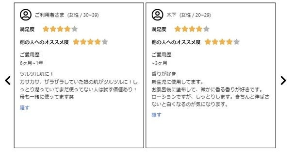 - 先行活用事例:ベビースキンケアブランド「ALOBABY」、公式通販サイトで「愛用歴」「オススメ度」を訴求