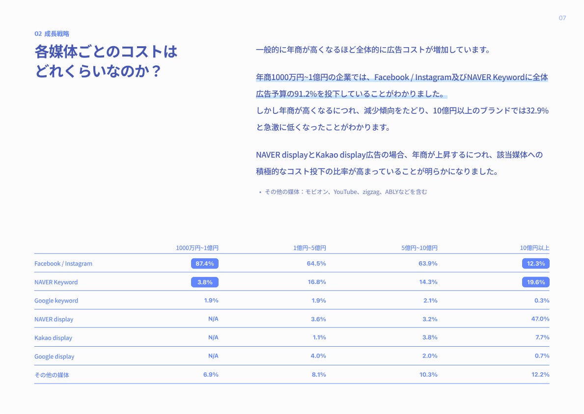 そこで、他社がどれくらい成長しているのか、売上対比でどれくらい・何にコストを投下しているのかといった情報があれば、SMB企業の持続的な成長をサポートするうえで大きな一助になれると考え、本レポートをグローバル全体で作成し、公開するに至りました。その第一弾として今回、ECの成長が最も早い国である「韓国」にてレポートを作成しました。実際に、本レポートを韓国にて7月に公開したところ、2000件以上ダウンロードされ、満足度調査では、5点満点中4.2点で「他では取り上げられない内容でとても役立った」「自社と同規模のデータが見れて、今後のマーケティングの意思決定に活用したい」といったご好評の声をいただき、日本でも公開するに至りました。