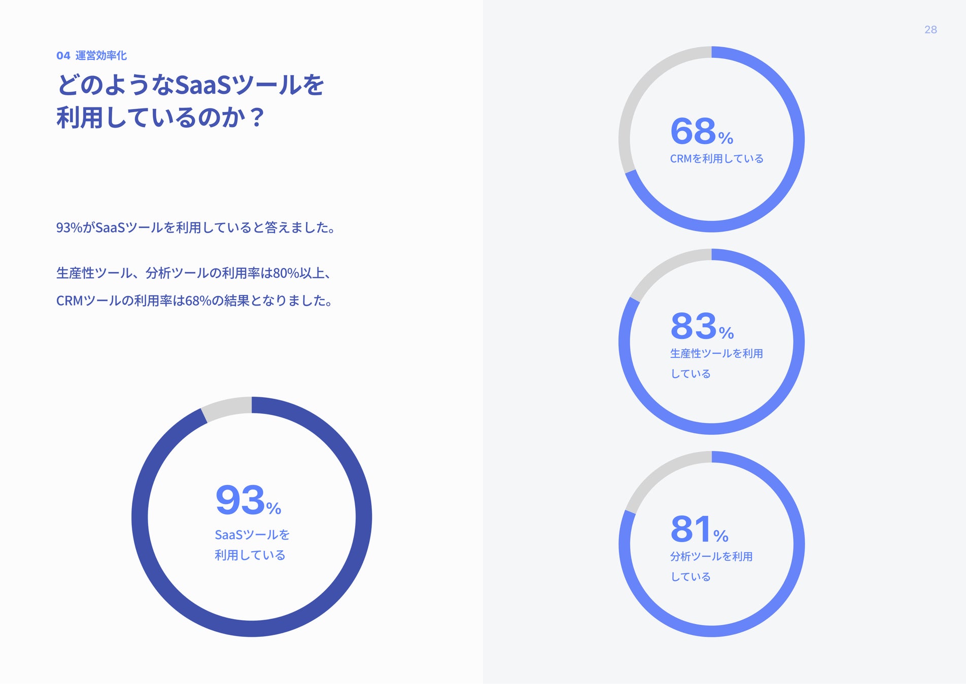 ■ 93%がSaaSを導入。分析ツール・生産性ツールを導入している企業は8割、CRMは7割