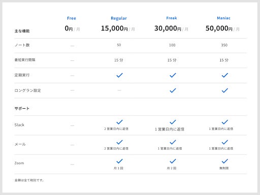 フリープランでは、ワークフローを任意の時刻に自動で実行させることはできませんが、管理画面から手動で実行することで、各種データの更新やメール送信などの処理が行えます。TēPs でなにができるのか、実際に管理画面を触りながら試せるプランです。