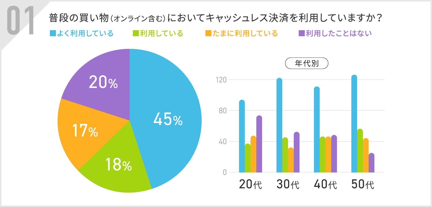 以上、20代~50代の男女を対象としたキャッシュレス決済利用についての調査結果を紹介しました。