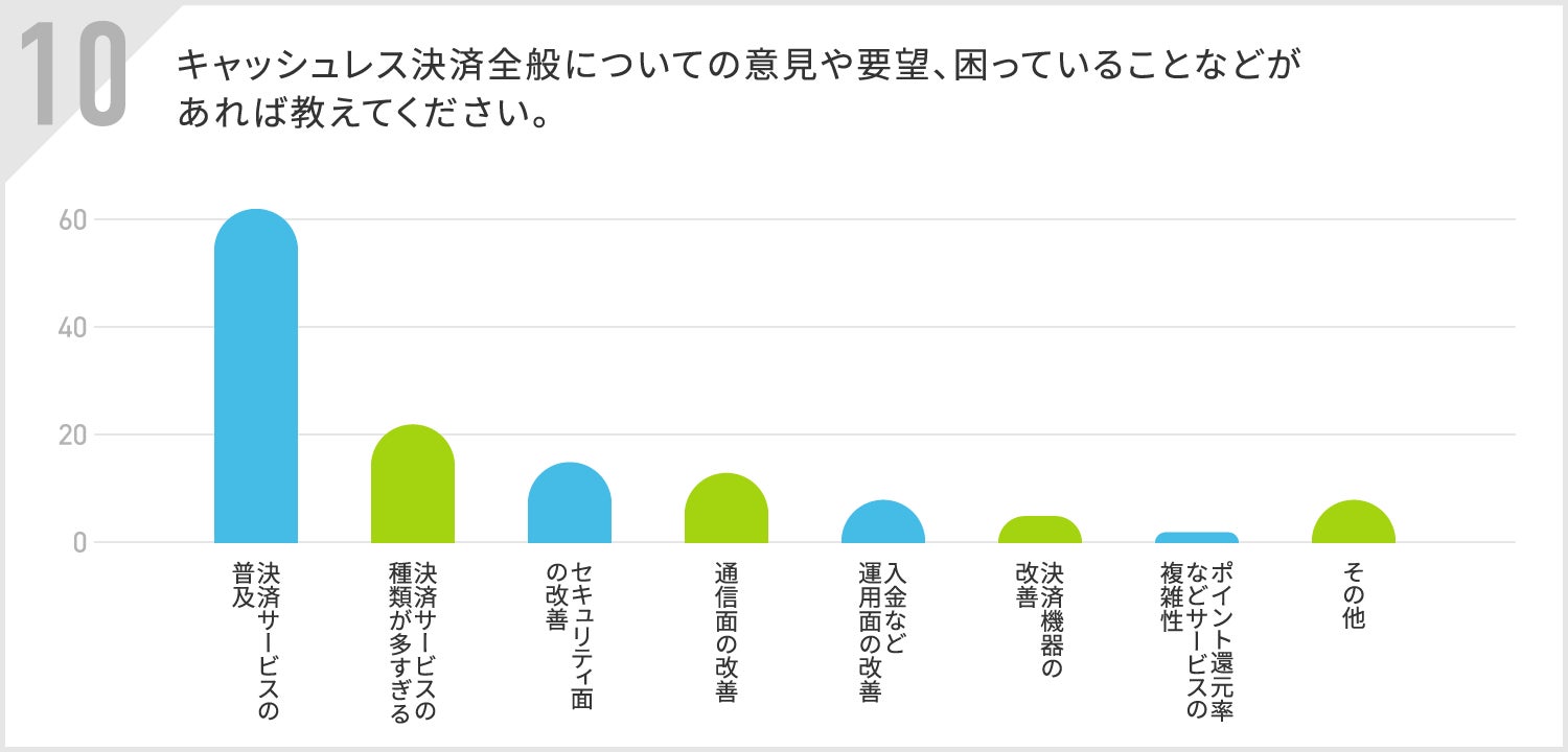 決済サービスの種類に関しても「店舗ごとに利用できる決済サービスが違うため、様々な決済サービスを使えるようにする必要があり不便」という、決済サービスの多さ故の不便さについての意見も多く見受けられました。