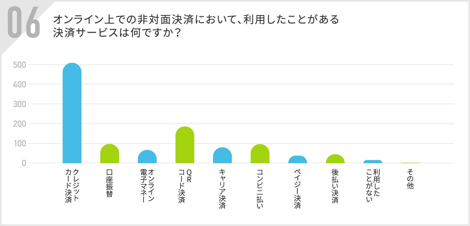 オンライン上での非対面決済において、最も利用されているのは「クレジットカード決済」となり、他のサービスと比較しても圧倒的な利用率を示しました。