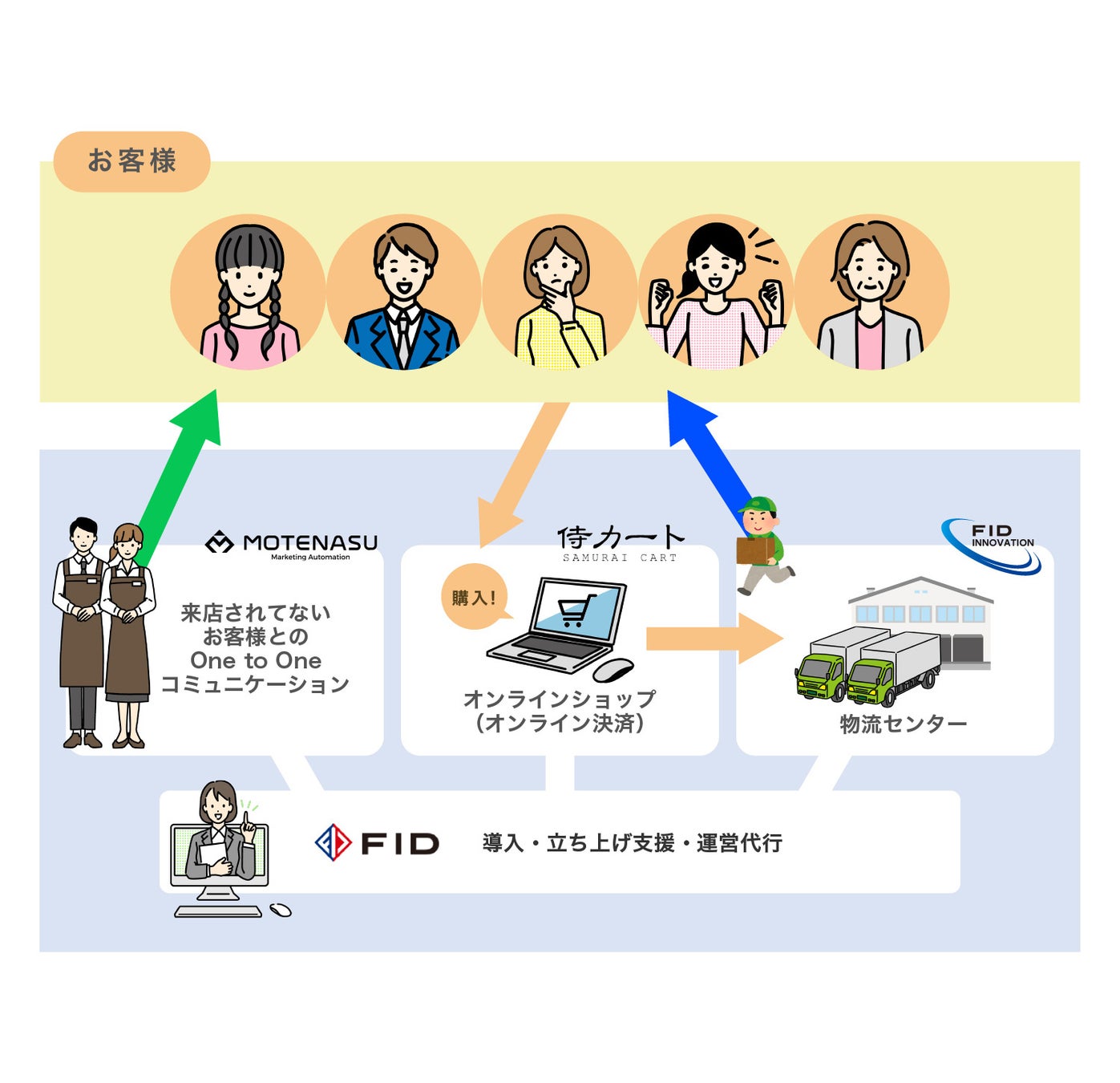 また、EC販売商品の発送業務などについては、同社グループのFID-INNOVATIONが担当します。