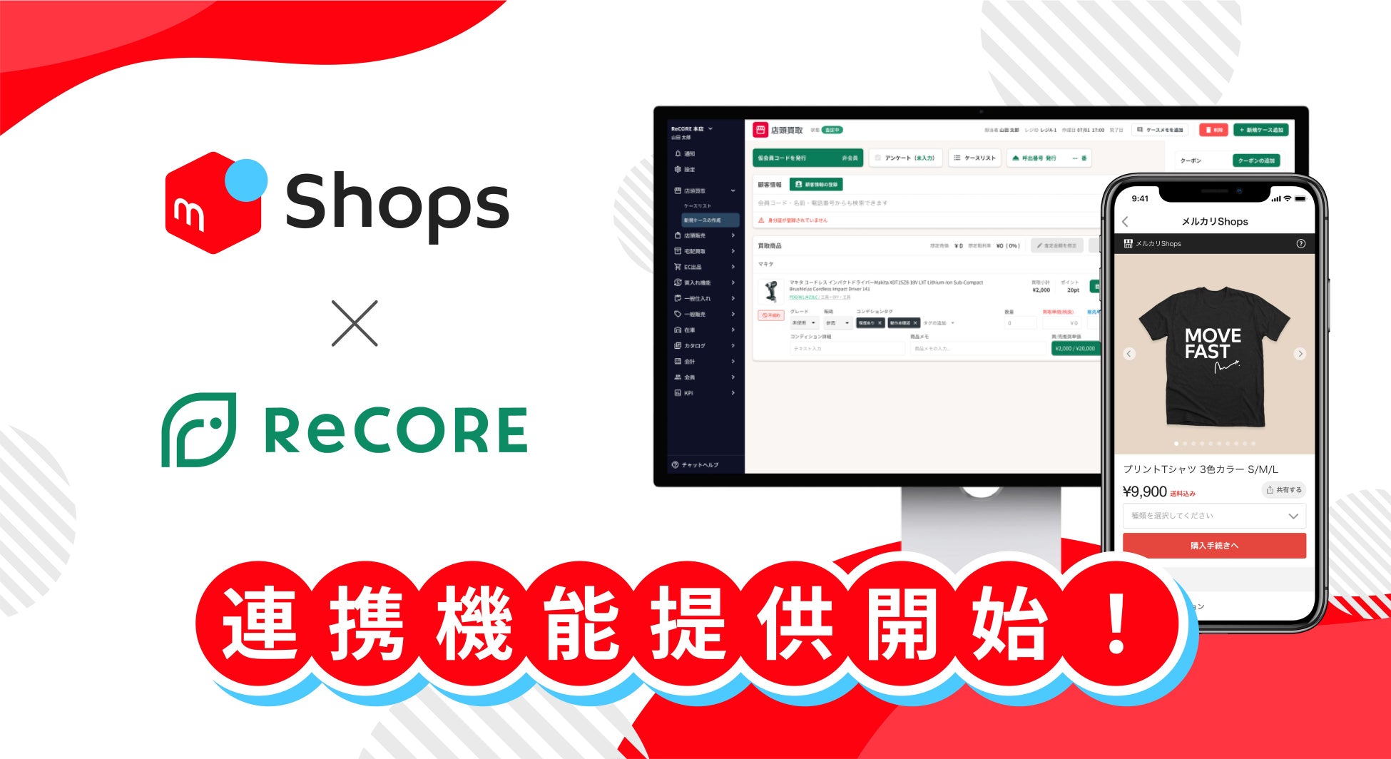 株式会社NOVASTO(ノヴァスト)(本社:大阪府吹田市 代表取締役:佐藤 秀平)は、11月上旬より、当社が提供する小売・リユース業専門クラウドPOSシステム「ReCORE(リコア)」(以下、ReCORE)に「メルカリShops」連携機能をリリースいたします。今回のサービス提携により、出品在庫の連携、受注管理が可能になります。また「メルカリShops」とPOSシステムとのシステム連携は業界初の試みとなります。