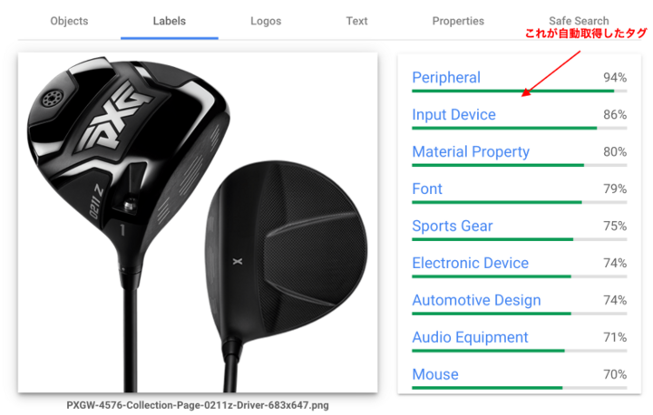 商品に合った関連キーワードタグ自動登録機能とは、商品名と商品画像を元に、Google Vision AIを活用して商品ごとに「タグ」を自動的に割り当て、タグによって適切にデータを分類するための機能です。