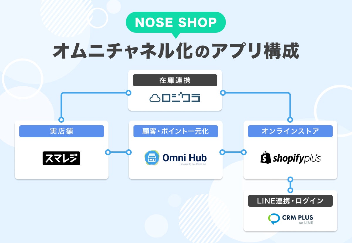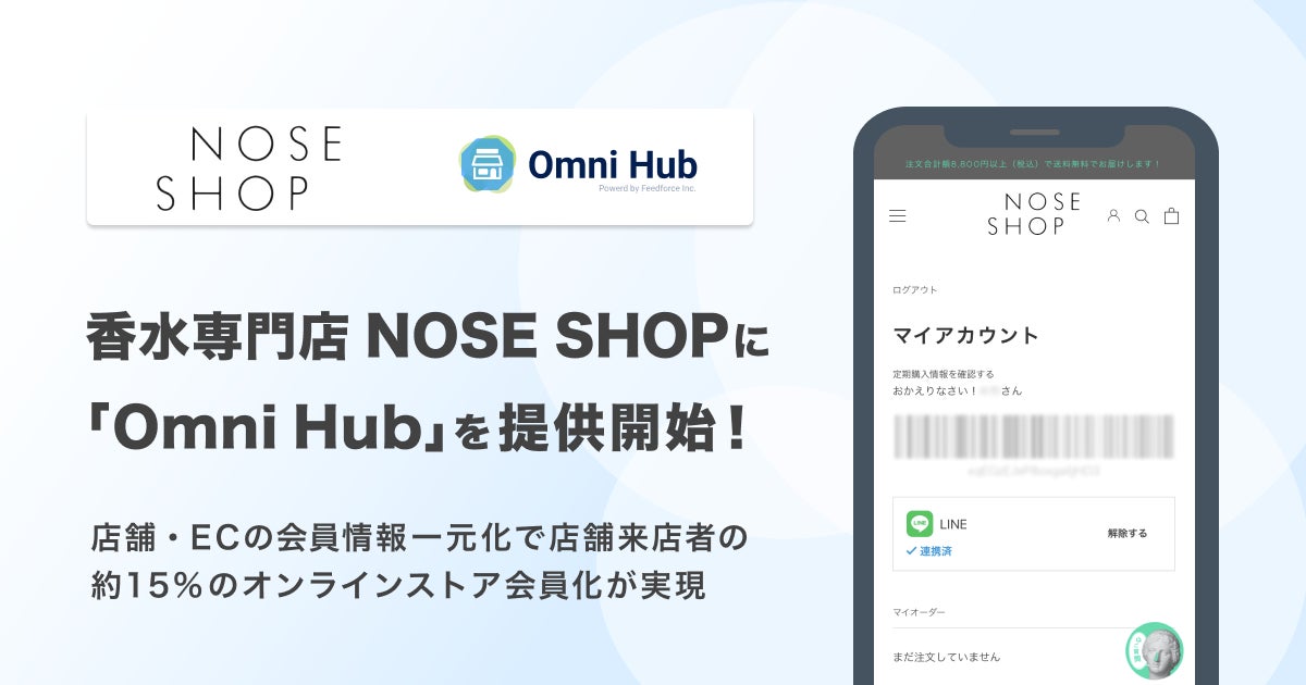 Shopify(ショッピファイ) – スマレジ間のオムニチャネル会員連携アプリ「Omni Hub」(株式会社フィードフォース、所在地:東京都文京区、代表取締役:塚田 耕司)は、NOSE SHOP株式会社(所在地:東京都渋谷区、代表取締役:中森 友喜)が運営する「NOSE SHOP」公式オンラインストア( https://noseshop.jp )、ならびに全国の「NOSE SHOP」の実店舗10店舗に導入いただきました。