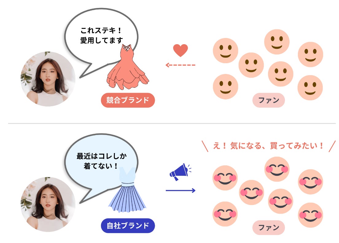 ★競合ブランドのハッシュタグ内で高いエンゲージメントを獲得しているインフルエンサーを起用することで、競合ブランドに関心のあるフォロワーを自社ブランドへ導くことが可能