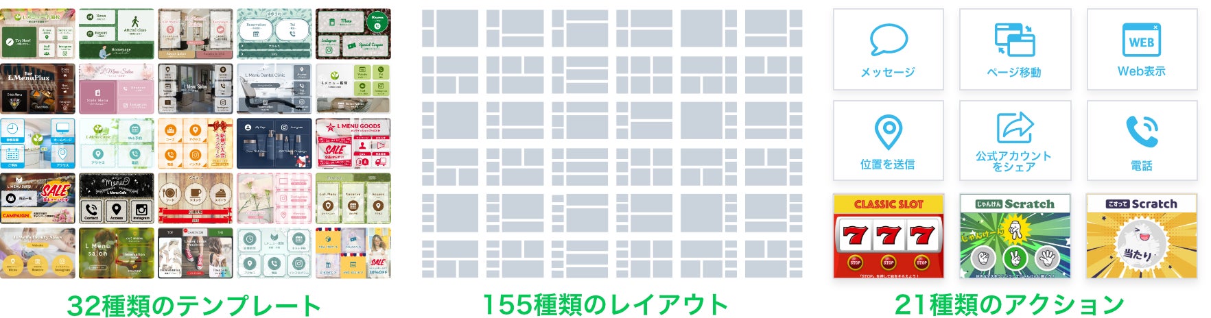 ユーザーは自分のビジネスにフィットしたテンプレートを選び、カスタマイズするだけで魅力的なリッチメニューを完成させることができます。