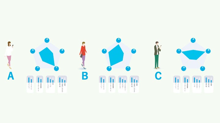 Yappli CRMでは、店舗チェックインや、アプリ内コンテンツ閲覧など、購入に至るまでの「行動データ」の取得が可能です。本機能により、これらのデータをスコアで把握、ユーザーのリアルタイムの状況をわかりやすく可視化できるようになりました。様々なデータを活用して、ユーザー一人ひとりの傾向を理解し、より適切なアプローチを実現できます。