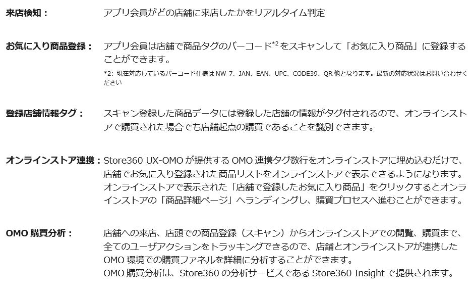 Store360 UX-OMOが提供する主な機能は以下のとおりです。