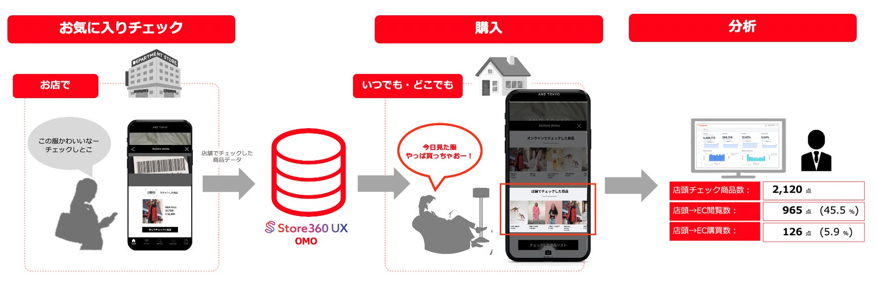 今回Store360 UXの新機能としてリリースしたStore360 UX-OMOにより、小売事業者は店舗でのお気に入り登録機能とオンラインストアとの連携を最小コスト・最短期間で実現できるようになりました。