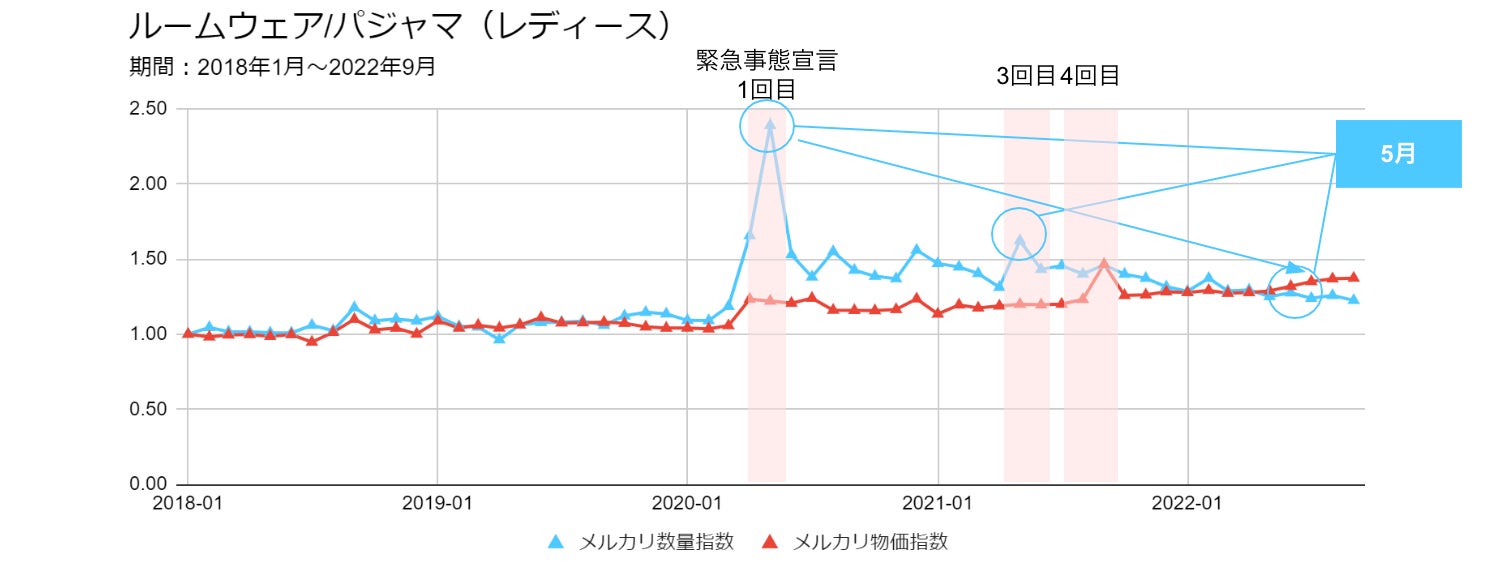 - <ピックアップ> 外出自粛をきっかけに数量指数が急上昇した「ルームウェア/パジャマ」、現在は下落傾向
