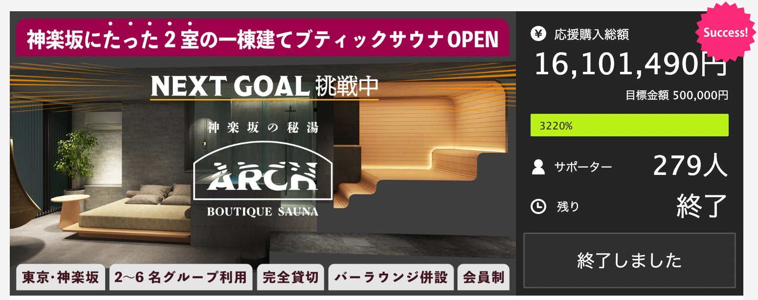 その中でも特に、密が避けられる会員制サウナや、親しい友人とコミュニケーションを楽しめる個室サウナや、貸し切りサウナへの人気が高まりました。また、「Makuake」でプロジェクトを実施した事業者(以下、実行者)を対象とする表彰イベント「Makuake Award 2022」のノミネート企業には、ブティックサウナ「ARCH」がサウナ関連プロジェクトとしては初めて選ばれています。
