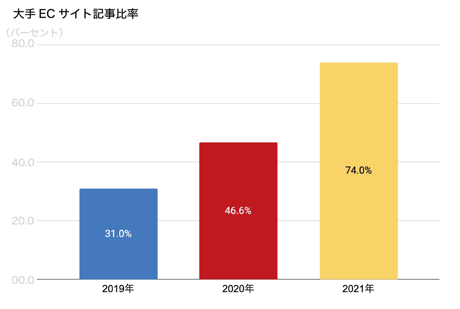 (n=2019年:大手ECサイト記事100、その他記事223、