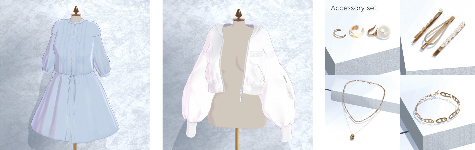 Caratで実際は展示販売されるアイテムは、今年10月3日に販売を開始したドットエスティオリジナルアバター第一弾「枡花 蒼」が身につけているアダストリのブランド「RAGEBLUE」のアイテムと、12月に販売を予定している第二弾アバターの先行展示を予定しております。