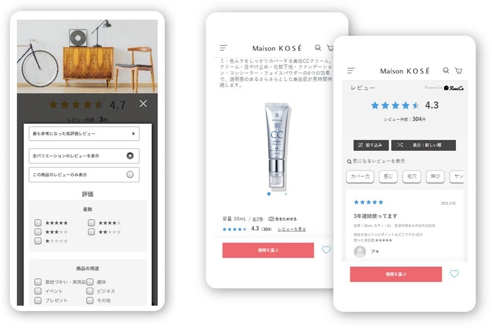口コミを多く集め、気になる点が解消でき、立場や悩みが似たユーザーの口コミを見つけ不安が解消されることによって、消費者のインターネットでの買い物をサポートします。