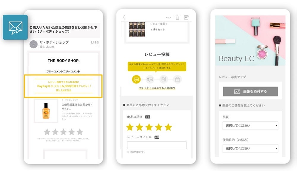 - 集める :レビュー依頼メールの自動配信、ReviCo独自のインセンティブキャンペーンを実施