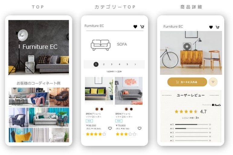 - 魅せる :ランキング、画像一覧などレビューを様々な形で訴求でき、スタッフレビューやスタッフおすすめ商品の掲載も可能