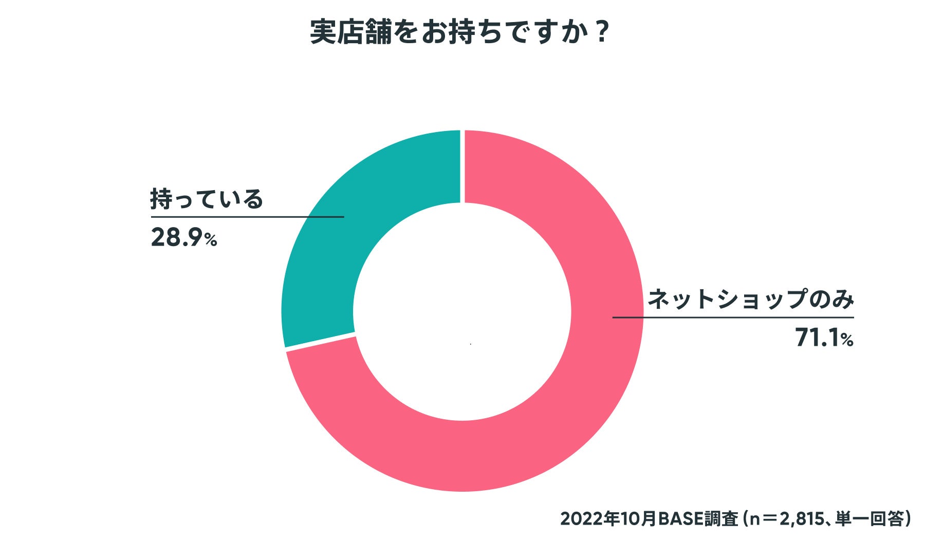 実店舗の有無に関しては、実店舗を持たない「ネットショップのみ」の回答が71.1%と、昨年と同水準になりました。「ポップアップショップや期間限定の催事に出店した経験」では「経験がある」との回答は31.5%となりましたが、条件に合うリアル店舗(実店舗やポップアップ)の出店支援があれば利用したいと考えているショップオーナーは64.8%と、条件さえ合えばリアル店舗への進出意欲も引き続き高い傾向にあることが明らかになりました。また、「ポップアップショップや期間限定の催事に出店した経験がある」ショップのうち、「『BASE』が提供するサービスで、条件に合うリアル店舗(実店舗やポップアップショップ)の出店支援があれば利用したいと思う」と回答したショップを算出したところ79%となり、出店経験のあるショップは再度出店したい意向が高いことがわかりました。
