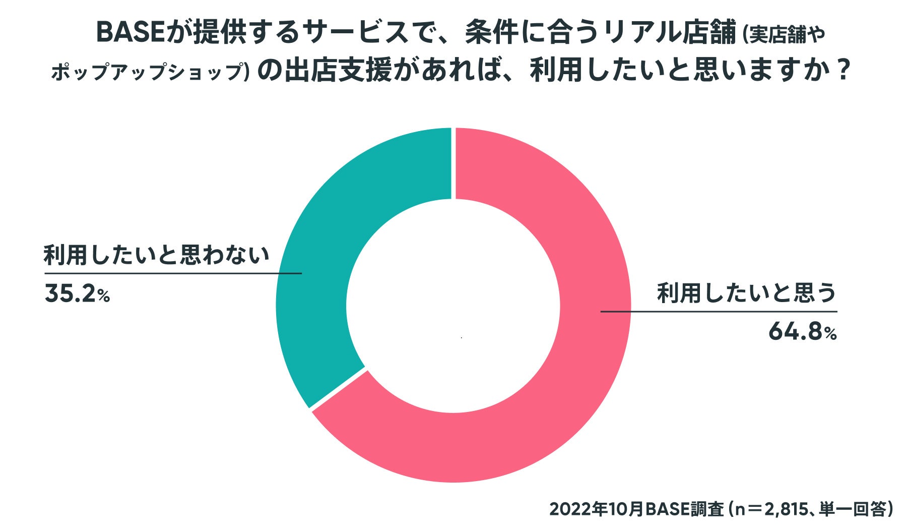 ・「BASE」が提供するサービスで、条件に合うリアル店舗(実店舗やポップアップショップ)の出店支援があれば利用したいと思いますか?