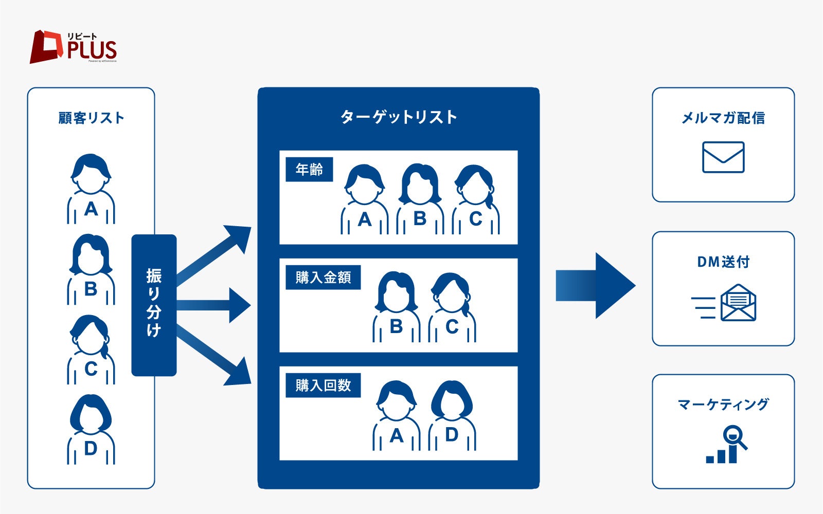ターゲットリスト機能で顧客の購入情報・行動履歴などをデータ化し、細かくセグメントを分けて顧客一人ひとりに適切なアプローチが可能になりました。