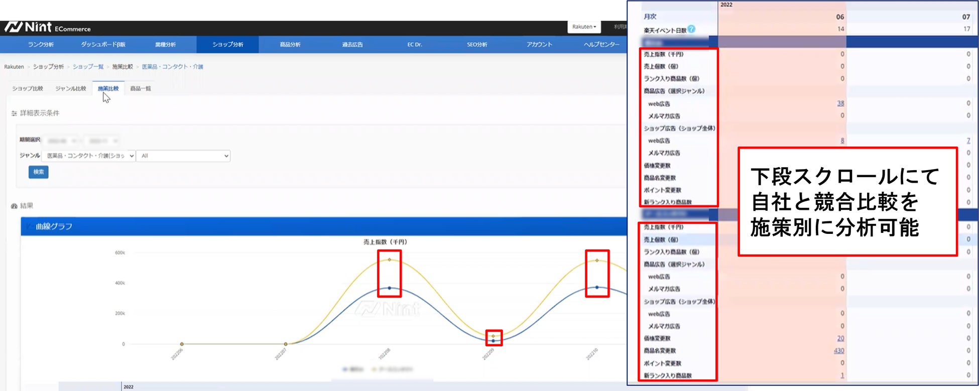 • 施策別(価格、商品タイトル、広告変更等)に対象ジャンルごとの他社ショップとの差異を特定することが可能