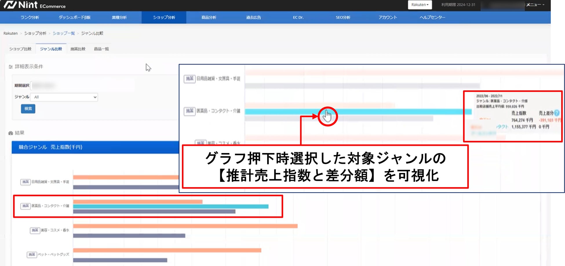 独自技術により国内大手ECモールの市場動向データを提供する株式会社Nint(本社:東京都新宿区、代表取締役:吉野順子、以下「Nint」)は、EC事業者向けに国内大手ECモールの販売推計データを提供するクラウドツール「Nint ECommerce」に、自社ショップと他社ショップとの差異を効率的に比較し改善点を把握できる「ショップ売上GAP分析」機能を新たに追加したことをお知らせします。当機能は「Nint ECommerce」のProfession版を契約いただいているお客様に、2022年11月30日より無料でご利用いただけます。