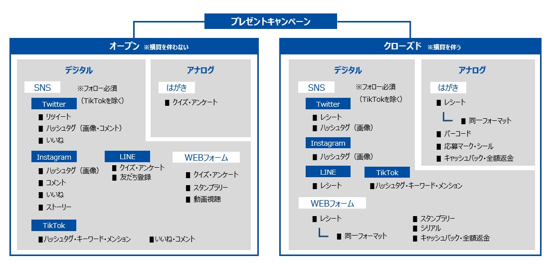 【2022年12月現在一般的に実施されている応募条件別プレゼントキャンペーン一覧】