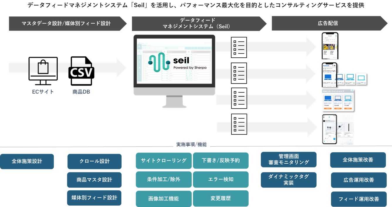 DACは、2021年4月から「Commerce Flow」を提供し、広告運用代行やコンサルティングサービスを行っています。その中で、導入企業が自社で自由に運用したいというニーズも数多くあることから、このたび、企業が「Commerce Flow」の導入から運用までを自社で行えるセルフプラン「Commerce Flow DAC Edition」を開発しました。広告運用業務を自動化することで、業務効率化によるコスト削減と広告効果のパフォーマンス最大化を同時に目指します。