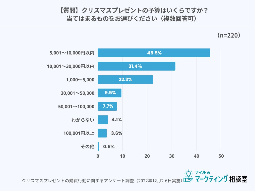 - クリスマスプレゼントの予算「5,001~10,000円(税込)」が最多