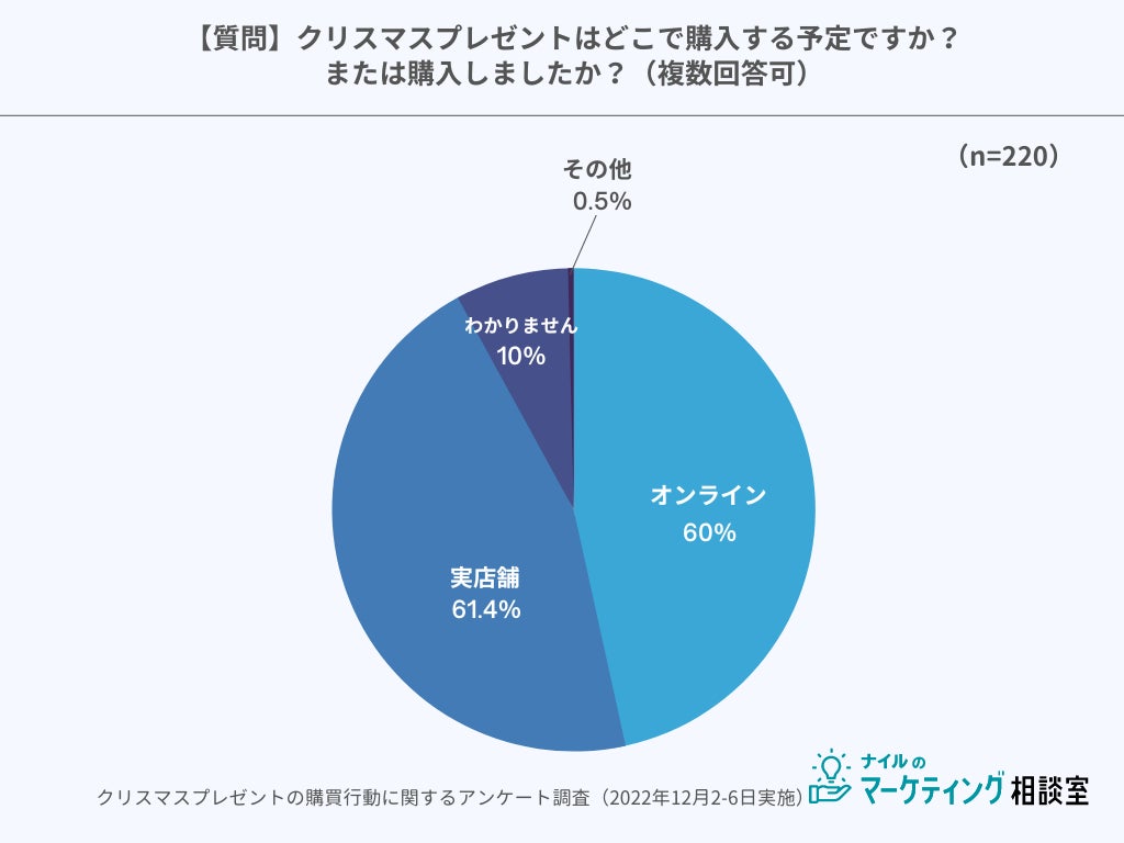 - クリスマスプレゼントの購入場所は「実店舗」と「オンライン」ほぼ同数
