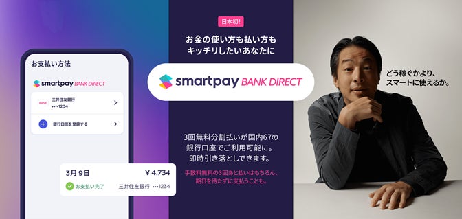 株式会社Smartpay(本社:東京都港区、マネージングディレクター 兼 最高収益責任者:大坪直哉、以下 当社)は、日本で初めてオンライン決済の際に銀行口座から直接支払える後払い決済・BNPL(Buy Now, Pay Later)サービス「Smartpay Bank Direct(バンクダイレクト)」を発表しました。日本電子決済推進機構(以下 JEPPO)の協力のもと開発された Smartpay Bank Directは、67 の日本の金融機関(2022年11月30日時点)のネットワークを通じて銀行口座から直接決済を行うことができ、消費者のセキュリティを確保しつつ利便性を向上させます。Smartpay Bank Direct は、当社が提供するBNPLソリューション「Smartpay」を利用する際の決済画面に標準搭載される、利息、決済手数料、延滞手数料などが一切発生しない完全無料のサービスとなります。