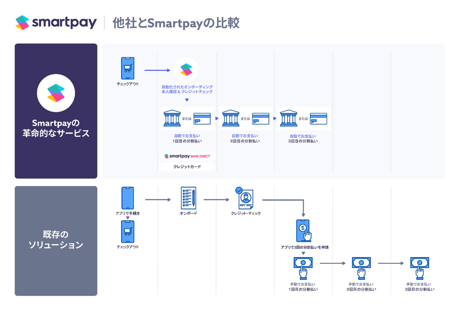 Smartpay Bank Direct は、当社が2021年11月に提供を開始した、日本初のワンクリックで利用できるクレジットカードベースのBNPLソリューション「Smartpay」のデジタル決済エコシステムを拡張するサービスです。デジタル決済への移行に成功した海外市場を分析した結果、当社は日本市場の消費者に向けて、包括的なエコシステムを提供する必要性を認識しました。Smartpay Bank Directは、JEPPOからの支援、67 の日本の金融機関の口座との接続、そして株式会社ジュン、株式会社ヤマップ、47インキュベーション株式会社 (Kagg.jp)、株式会社Morght (NELL) 、エース株式会社 (ZERO HALLIBURTON)  をはじめ、全国で拡大を続ける小売パートナー(※1)との連携によってエコシステムの形成を強固なものにします。このエコシステムにおける各ステークホルダーの協力体制のもと、過去6カ月間で3,000%以上成長してきた日本の顧客基盤(※2)に対して持続可能な価値提供を促進します。また、当社はSMBCベンチャーキャピタル株式会社、欧州ファンドのGlobal Founders Capital、シリコンバレーのMatrix Partners社など、デジタル決済の分野で豊富な経験を持つ世界中のパートナーからの出資や支援を得ています。