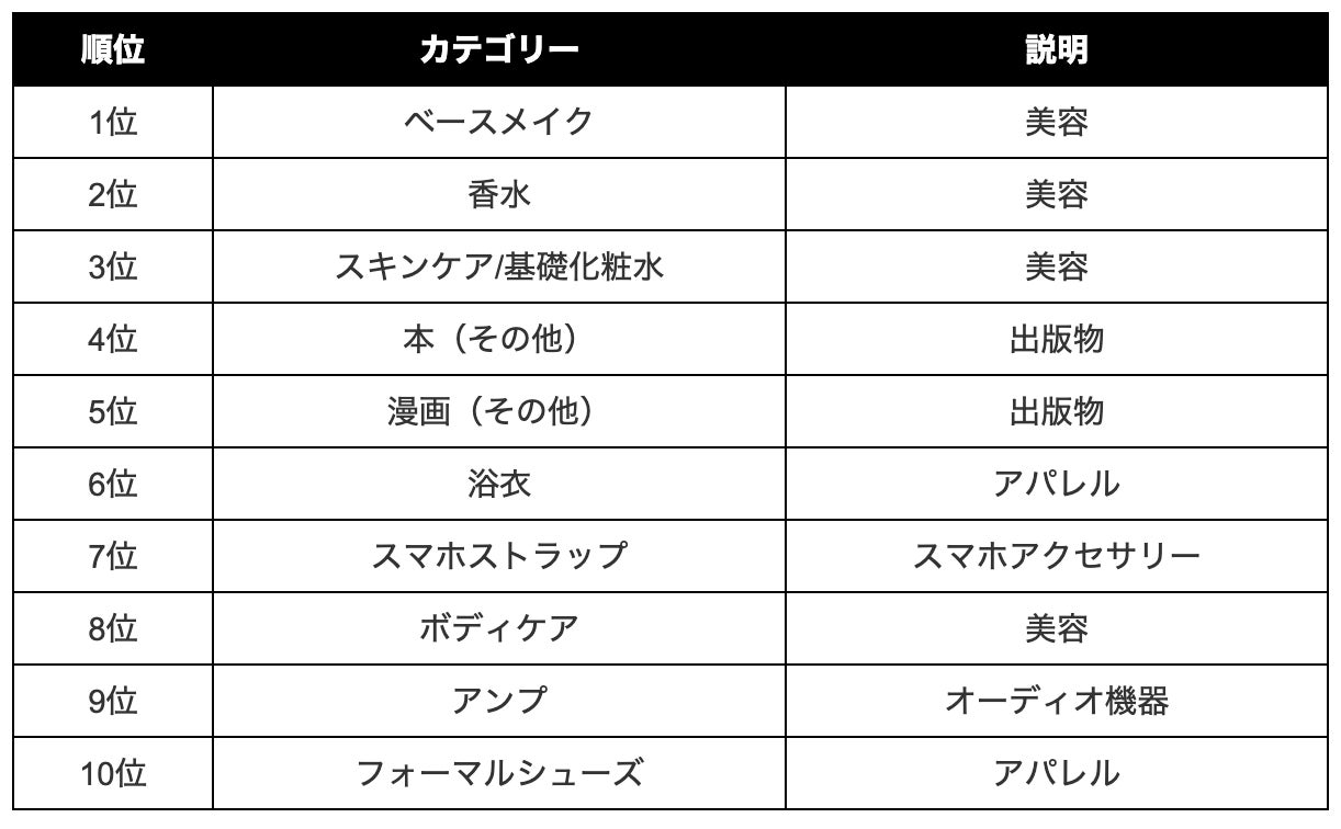 2022年は外出機会が増え、見た目を気にする人も増加したことから、急上昇カテゴリーTOP3は「ベースメイク」「香水」「スキンケア/基礎化粧水」となり、「コスメ・美容」カテゴリーが席巻しました。2019年以来の「コスメ・美容」カテゴリーTOP10入り※となり、約3年ぶりに消費の増加が見られます。同様に、「浴衣」「フォーマルシューズ」といった、外出行動に関連する消費も増加傾向にあります。