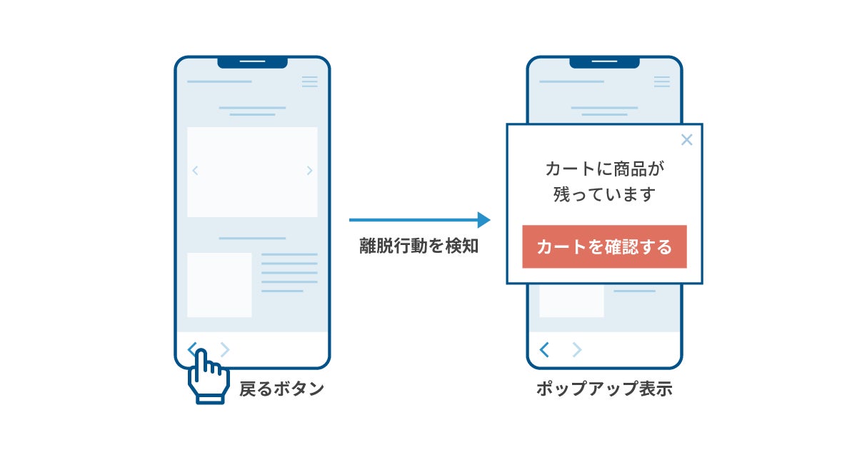 購入フォーム上での入力中で離脱したユーザーに対して、一定時間後にメール/SMS(Short Message Service)を送り、商品が未購入であることを伝え再度商品購入を促す仕掛けです。