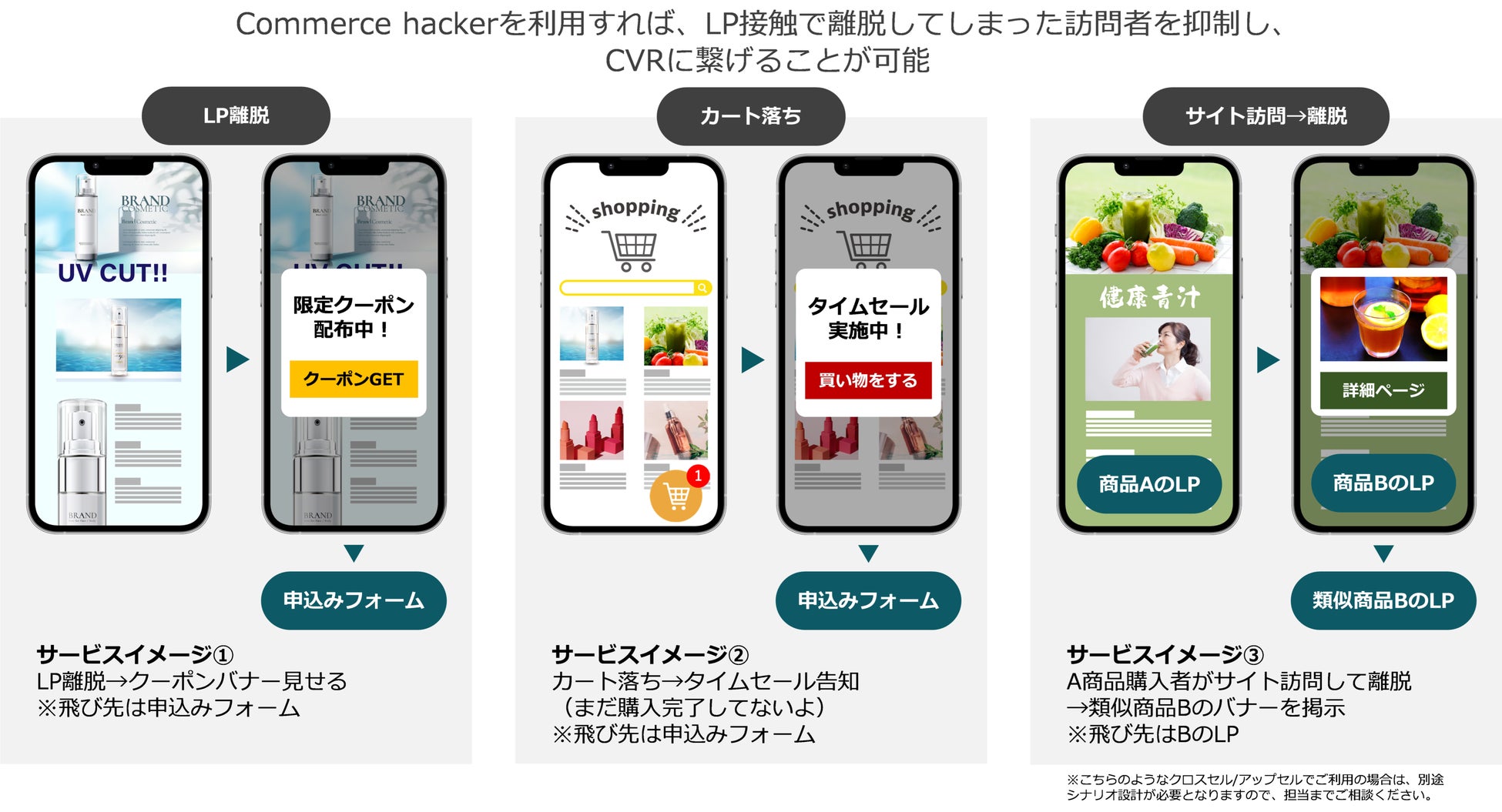 その取り組みの一環として、今年5月に、サイト来訪者の離脱防止と、見込み顧客に分かりやすいキャンペーンなどのお知らせを提示する機能を持つLP離脱防止ツール「Commerce Hacker(※1)」を提供しております、昨今のCookieレス問題に代表される「1度サイトから離脱してしまった方へのアプローチ」についてのご相談をいただく機会が増えてきておりました。