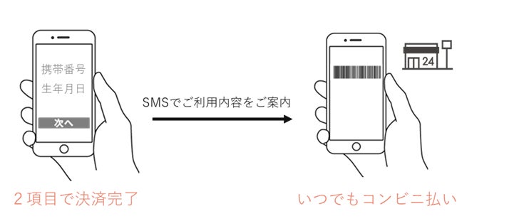 ・携帯電話番号と生年月日で決済し、スマートフォンに表示されるバーコードをコンビニで提示することで支払いが完了する「スマートフォン完結型」サービスです