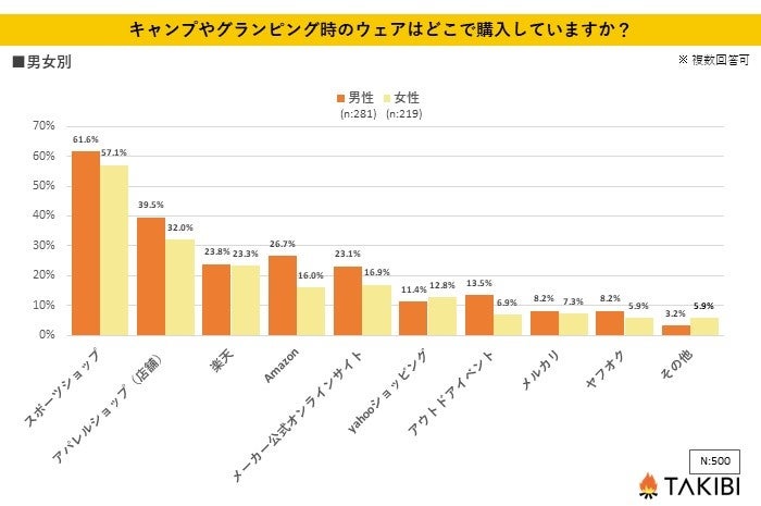 【質問:キャンプやグランピング時のウェアはどこで購入していますか?】