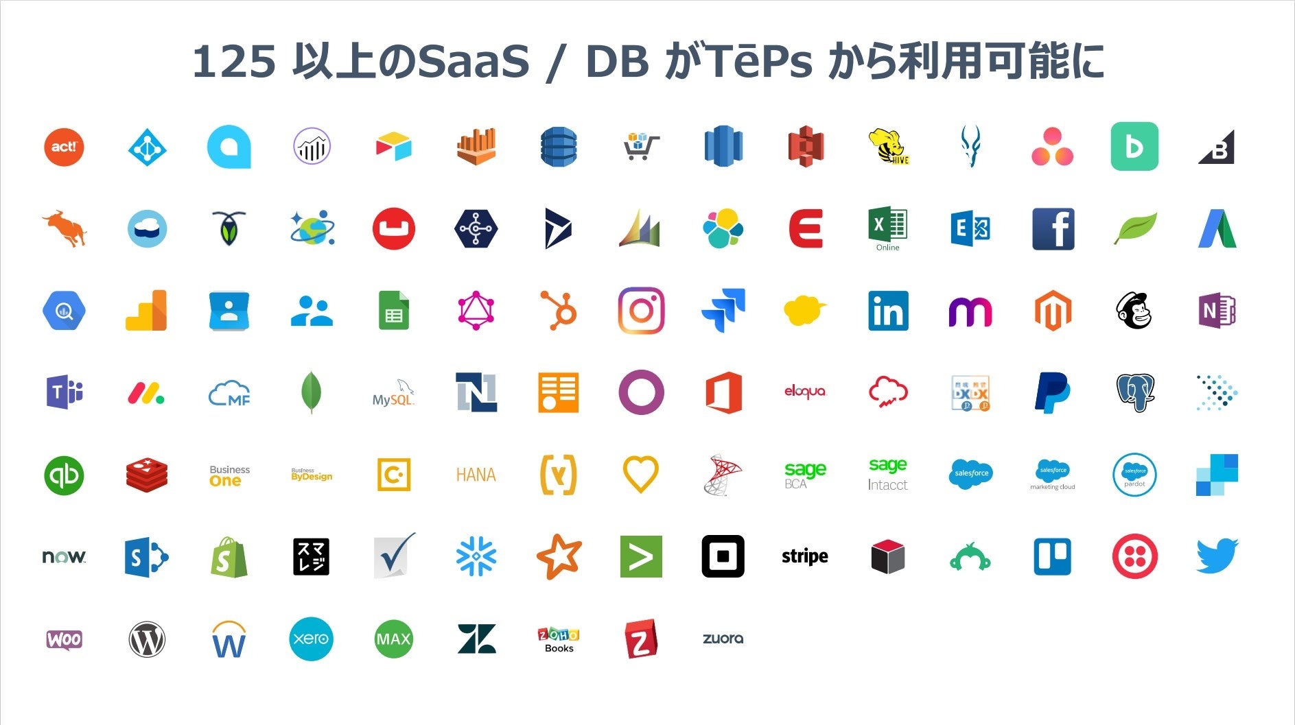 しかし、TēPs と CData Connect Cloud の連携機能の開発により、一挙に多数のサービスやプラットフォームと相互的にデータを連携できるようになりました。これにより、社内で利用している MA ツールや DB などと、TēPs が接続しているモールや受注管理ツールといったサービスを連携し、これまで未活用だったデータを施策に導入したり、データ集計の漏れを減らして分析の精度を向上させたりといったことが可能になります。また、TēPs のこれまでの機能では解決が困難だった個々の業務課題に対して、サービスの組み合わせによって複数の解決方法を用意できるようになるため、利用サービスや予算、人的リソースなどを考慮し、自社にとって最適なソリューションを選択することが可能になります。
